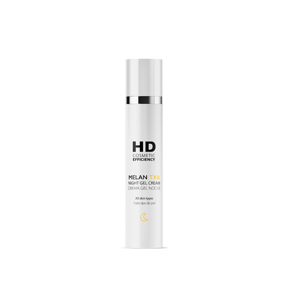 HD Cosmetic Efficiency Melan TXA Night Gel Crema 50ml es un tratamiento nocturno intensivo formulado para reducir las manchas oscuras y mejorar la uniformidad del tono de la piel. Su textura en gel-crema se absorbe rápidamente, trabajando durante la noche para iluminar y renovar tu piel.